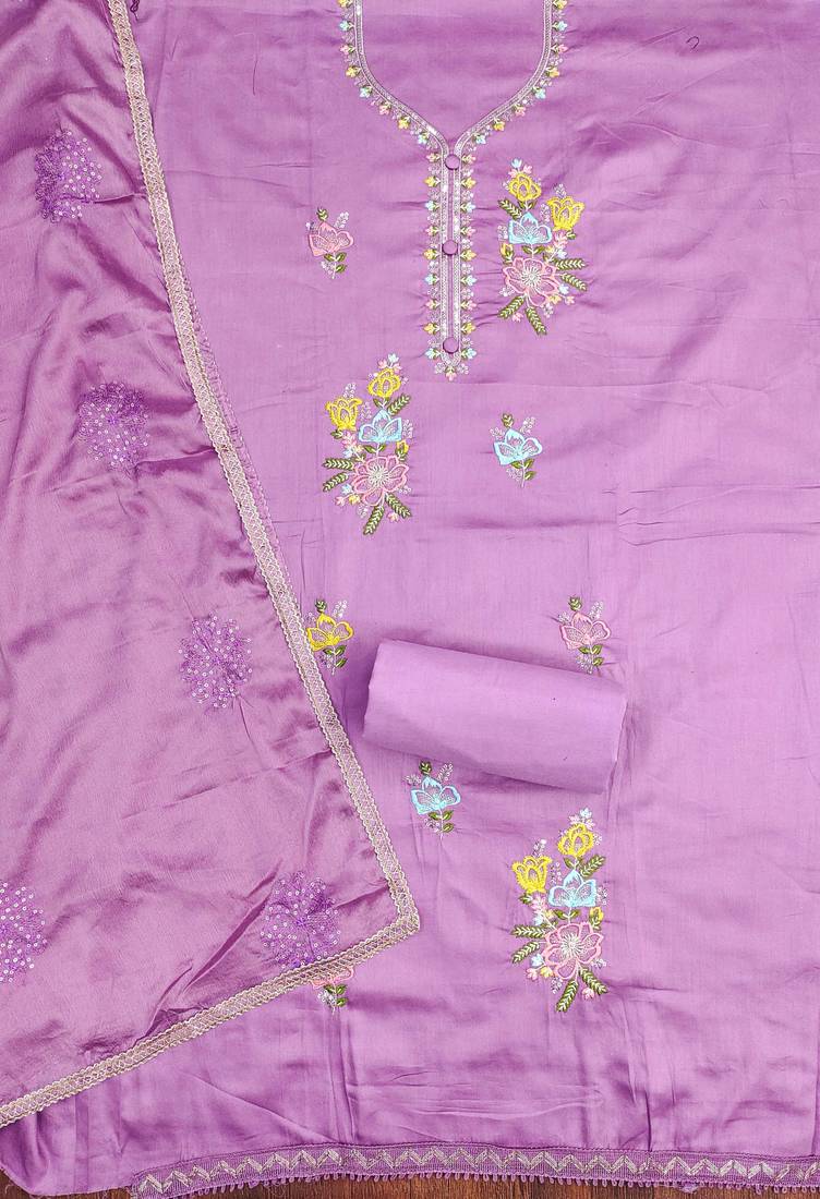 | Product Description | Everyday Essential Heavy Thread Sequence Embroidery And Fancy Border With Designer Embroidered Dupatta Straight Style 2.00 Mtr Unstitched Dress Material Top Of Levender Colour Jaam Cotton Fabric With 2 Mtr Semi Leon As Lining Inner Fabric Also Including 3.60 Mtr Unstiched Bottom Material Of Levender Colour Semi Leon Fabric With 2.00 Mtr Dupatta Of Levender Colour Chanderi Cotton Fabric By Shadow & Saining Brand |
