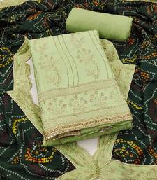 Light-green embroidered cotton semi stitched churidar dress-materials