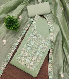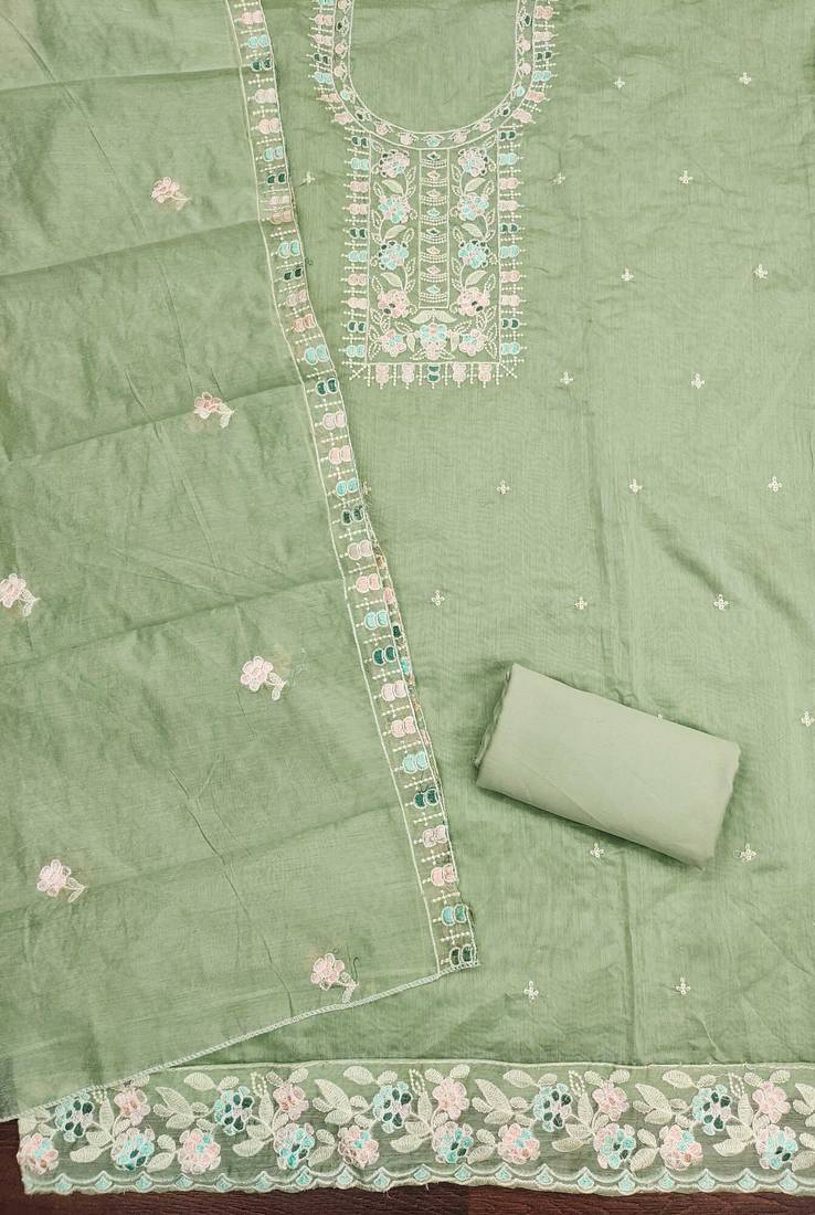 Light-green embroidered cotton semi stitched churidar dress-materials