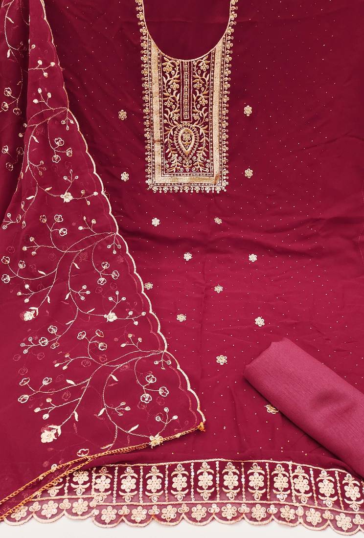 | Product Name | Magenta Embroidered Georgette Semi Stitched Churidar Dress Materials | |