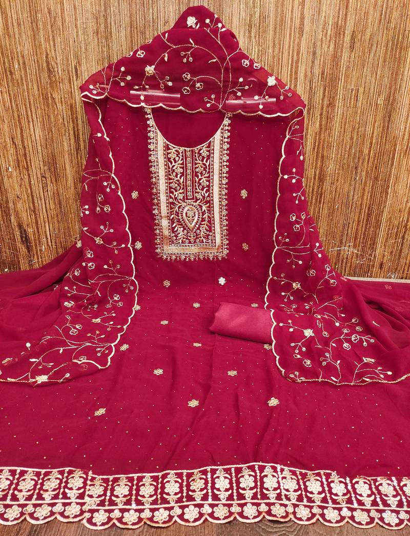 | Product Description | Exclusive Heavy Thread Daimond Embroidery And Fancy Border With Embroidered Dupatta Straight Style 1.90 Mtr Unstitched Dress Material Top Of Magenta Colour Georgette Fabric With 2 Mtr Santoon As Lining Inner Fabric Also Including 3.80 Mtr Unstiched Bottom Material Of Magenta Colour Santoon Fabric With 2.10 Mtr Dupatta Of Magenta Colour Georgette Fabric By Shadow & Saining Brand |