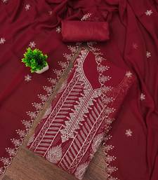 Maroon embroidered georgette semi stitched churidar dress-materials