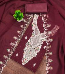 Maroon embroidered georgette semi stitched churidar dress-materials
