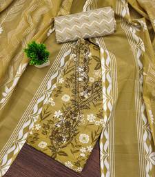 Everyday Essential Designer Print And Fancy Gala Work With Stylish Dupatta Straight Style 2.00 Mtr Unstitched Dress Material Top Of Mehandi Colour Cotton Fabric Also Including 2.00 Mtr Chudidar Style Bottom Piece Material Of Multi Colour Cotton Fabric With 2.00 Mtr Dupatta Of Multi Colour Cotton Fabric By Shadow & Saining Brand