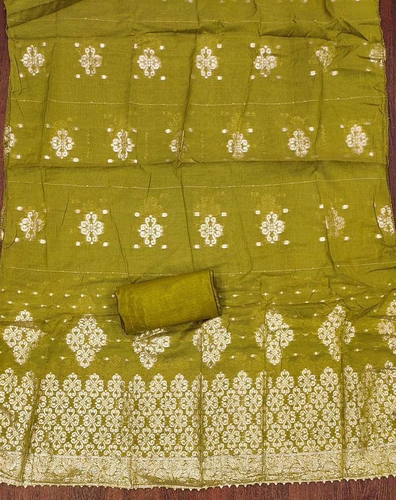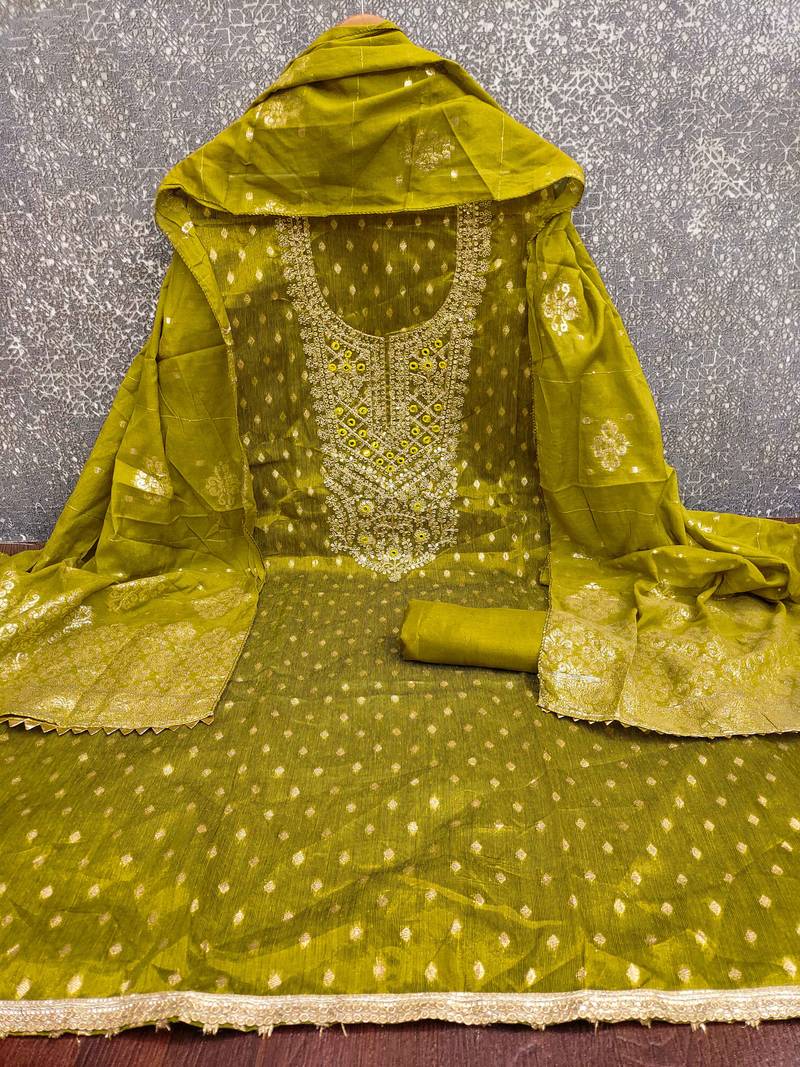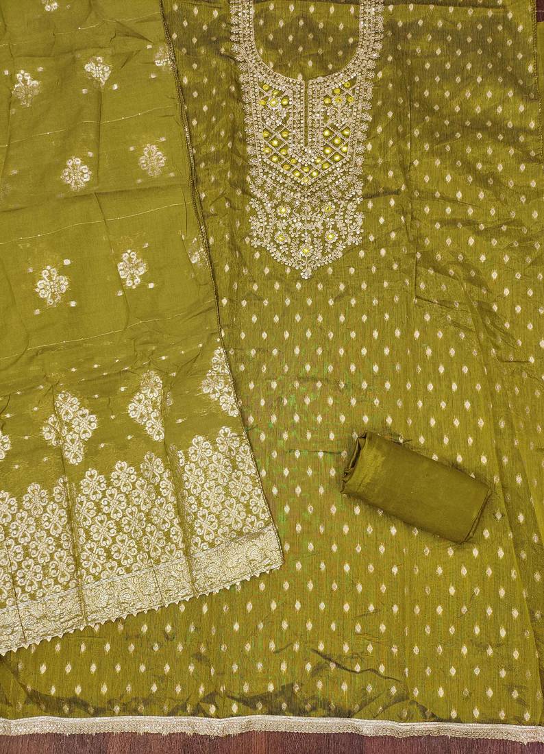 Mehendi woven shimmer semi stitched churidar dress-materials