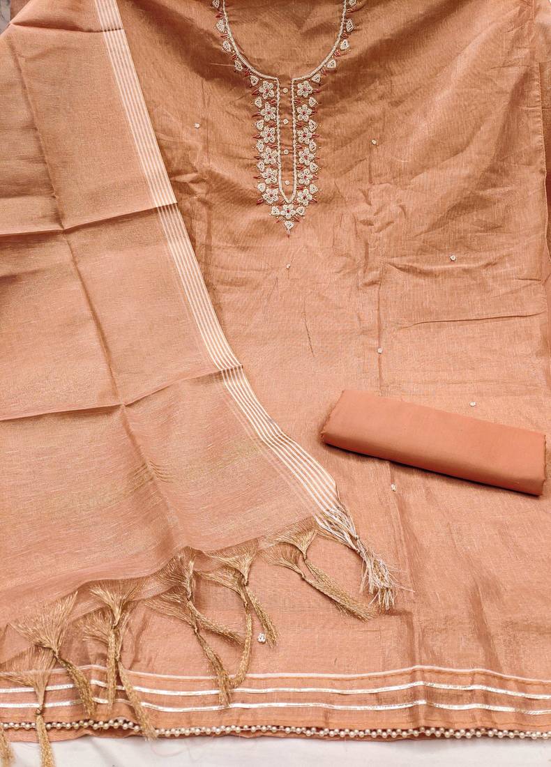 | Product Description | Editor’s Pick Heavy Handwork And Fancy Border With Designer Dupatta Straight Style 2.00 Mtr Unstitched Dress Material Top Of Peach Colour Simmer Cotton Fabric With 2 Mtr Dull Santoon As Lining Inner Fabric Also Including 3.80 Mtr Unstiched Bottom Material Of Peach Colour Dull Santoon Fabric With 2.10 Mtr Dupatta Of Peach Colour Banarasi Simmer Cotton Fabric By Shadow & Saining Brand |