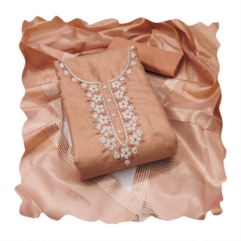 | Product Name | Peach Hand Embroidery Cotton Semi Stitched Churidar Dress Materials | |