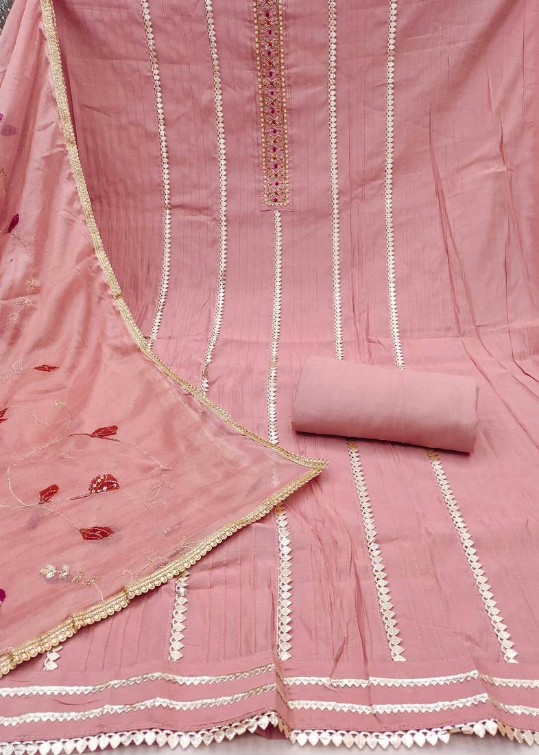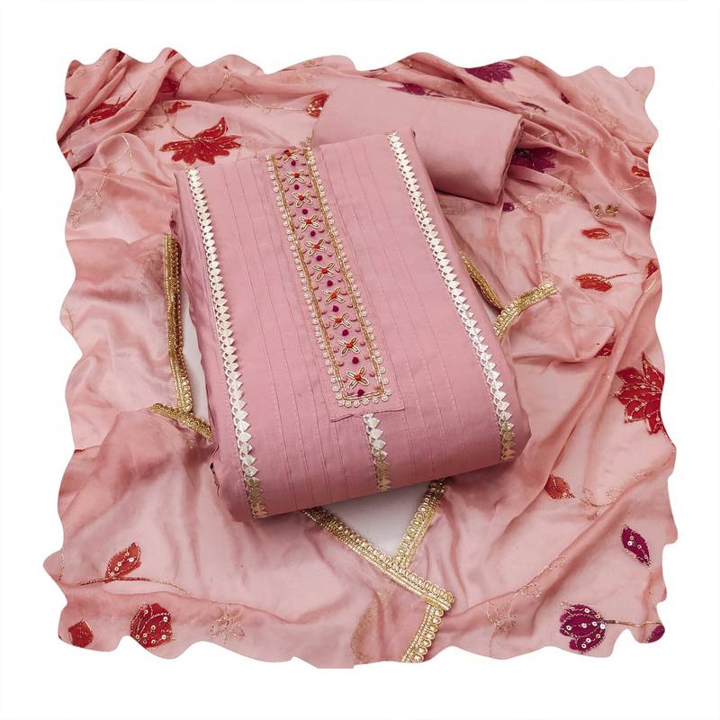 | Product Name | Peach Hand Embroidery Cotton Semi Stitched Churidar Dress Materials | |