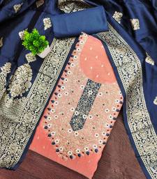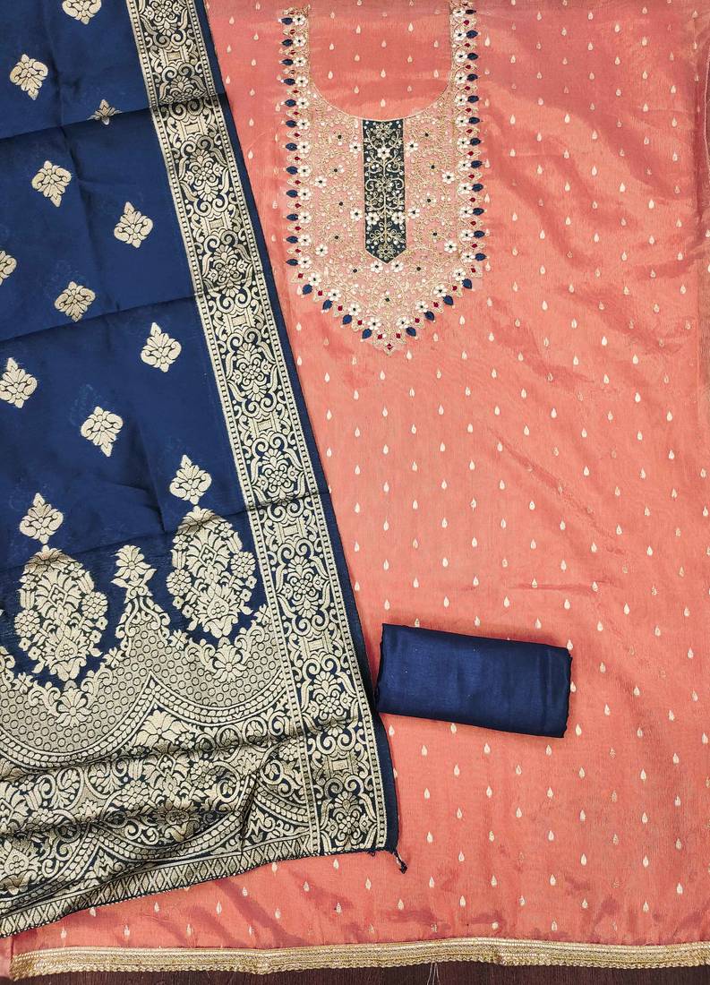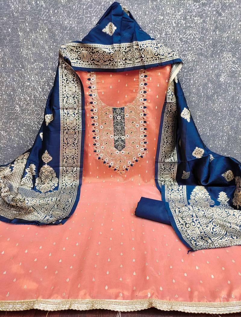 | Product Description | Statement Designer Weaving Handwork And Fancy Border With Stylish Woven Dupatta Straight Style 2.00 Mtr Unstitched Dress Material Top Of Peach Colour Simmar Fabric With 2 Mtr Santoon As Lining Inner Fabric Also Including 3.60 Mtr Unstiched Bottom Material Of Blue Colour Santoon Fabric With 2.00 Mtr Dupatta Of Blue Colour Jacquard Fabric By Shadow & Saining Brand |