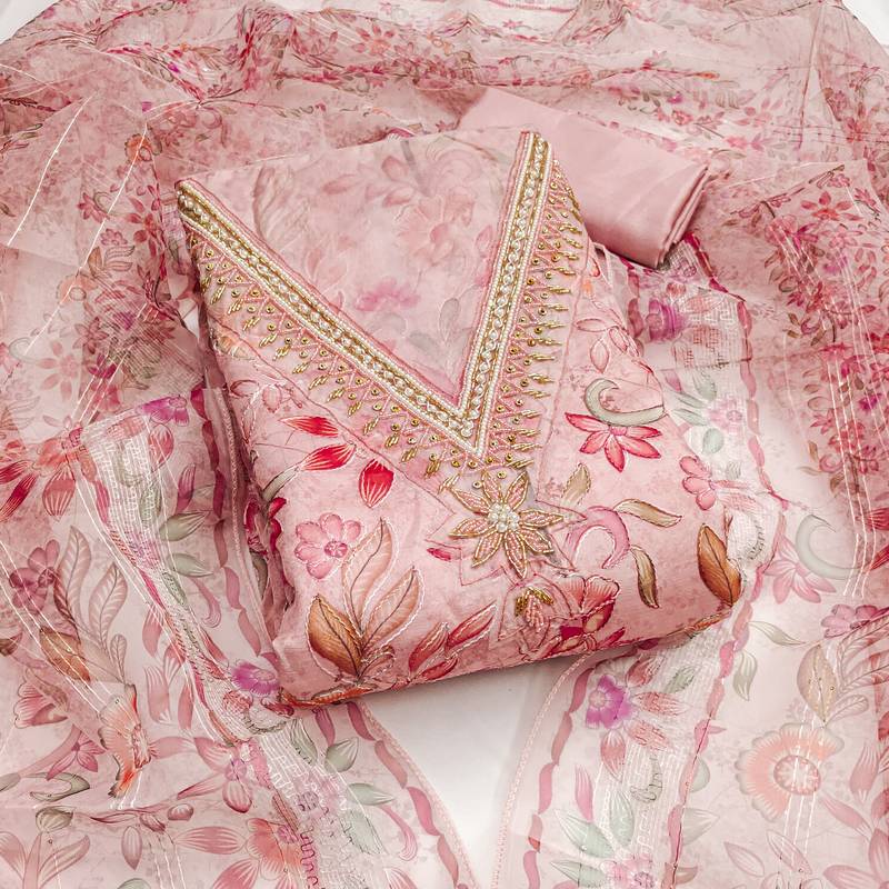 | Product Description | Stylish Thread Work With Designer Position Print And Hand Work With Fancy Sequence And Digital Print Dupatta Work Straight Style 2.00 Mtr Unstitched Dress Material Top Of Pink Colour Heavy Organza Fabric With 2 Mtr Heavy Santoon As Lining Inner Fabric Also Including 4.00 Mtr Unstiched Bottom Material Of Pink Colour Heavy Santoon Fabric With 2.25 Mtr Dupatta Of Pink Colour Heavy Organza Fabric By Shadow & Saining Brand |