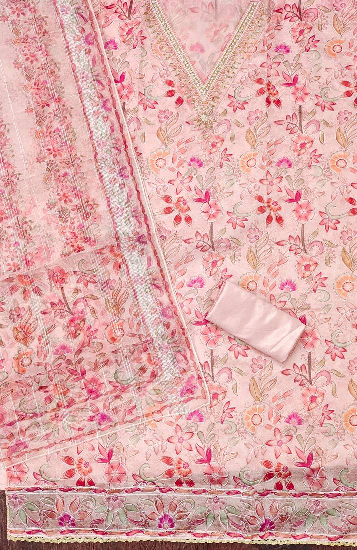 | Product Name | Pink Color Sequence Heavy Organza Straight Churidar Dress Material | |