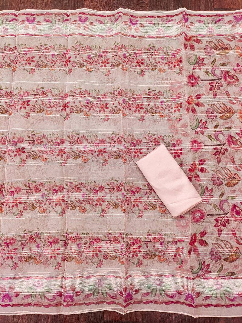 Pink color sequence heavy organza straight churidar dress material semi stitched
