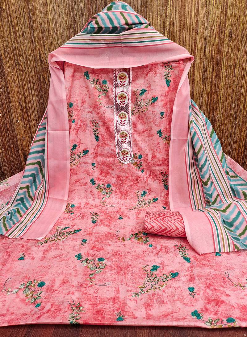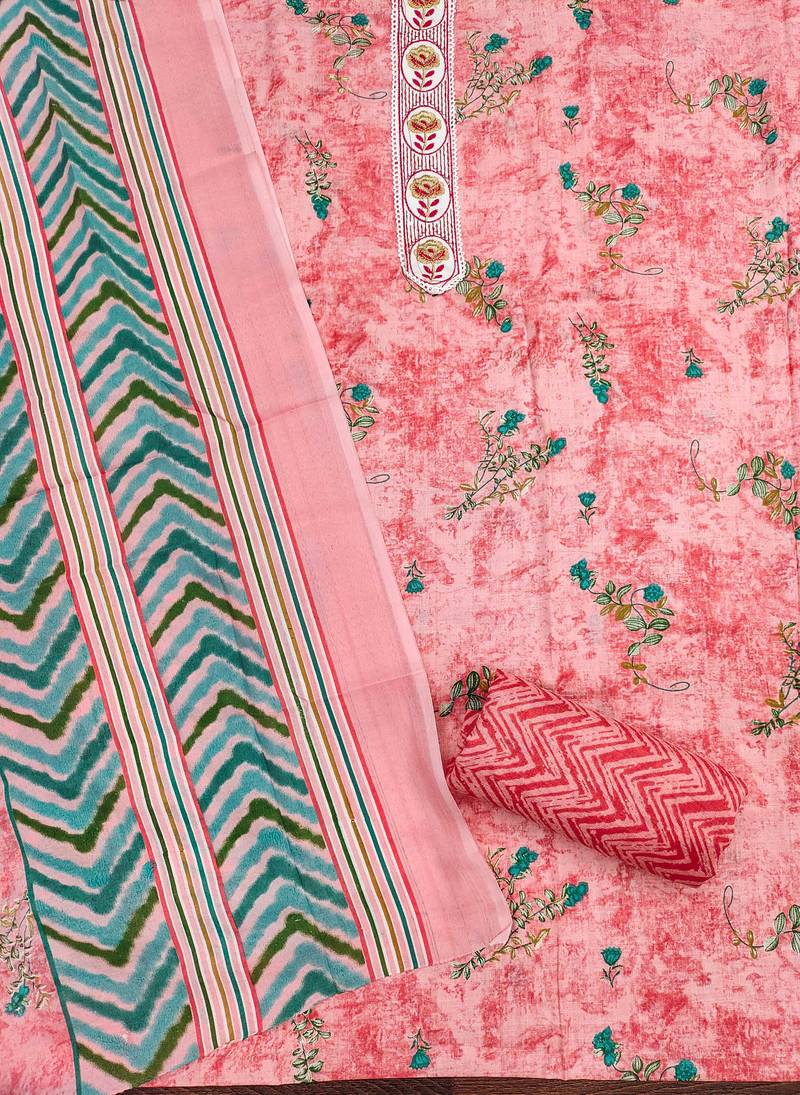 | Product Description | Curated Designer Print And Fancy Neck Embroidery With Stylish Dupatta Straight Style 2.00 Mtr Unstitched Dress Material Top Of Pink Colour Cotton Fabric Also Including 2.00 Mtr Chudidar Style Bottom Piece Material Of Pink Colour Cotton Fabric With 2.00 Mtr Dupatta Of Multi Colour Cotton Fabric By Shadow & Saining Brand |