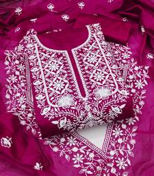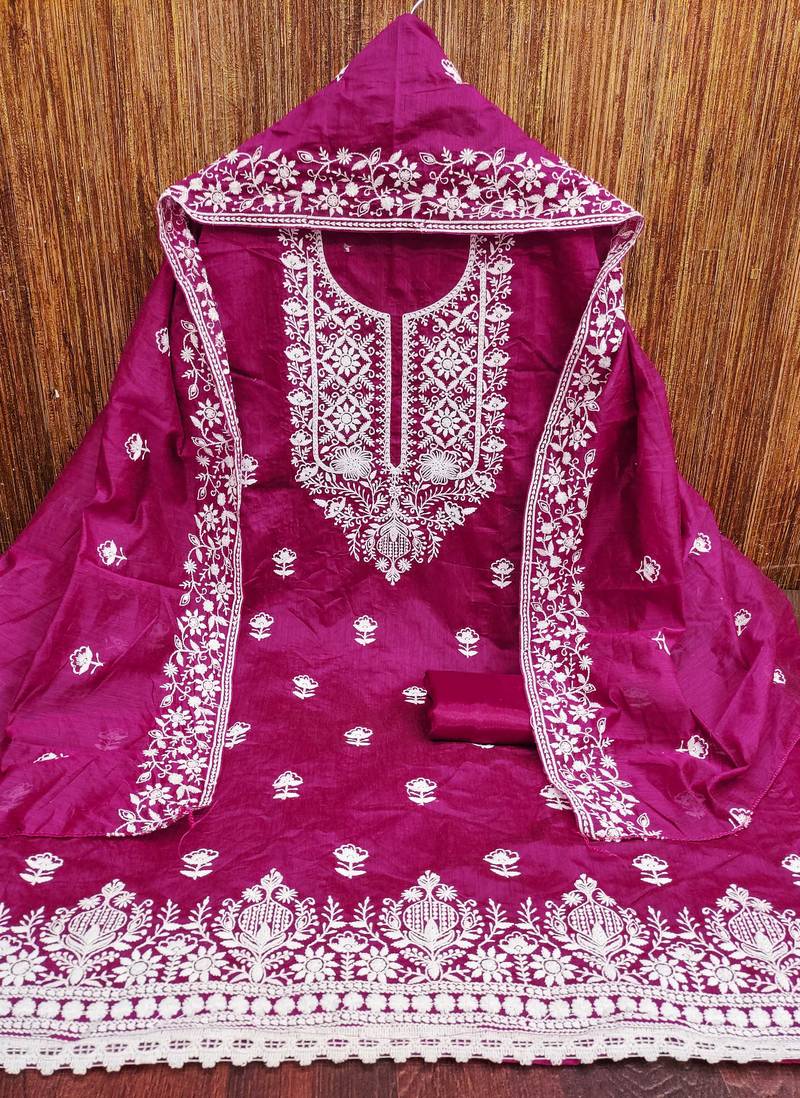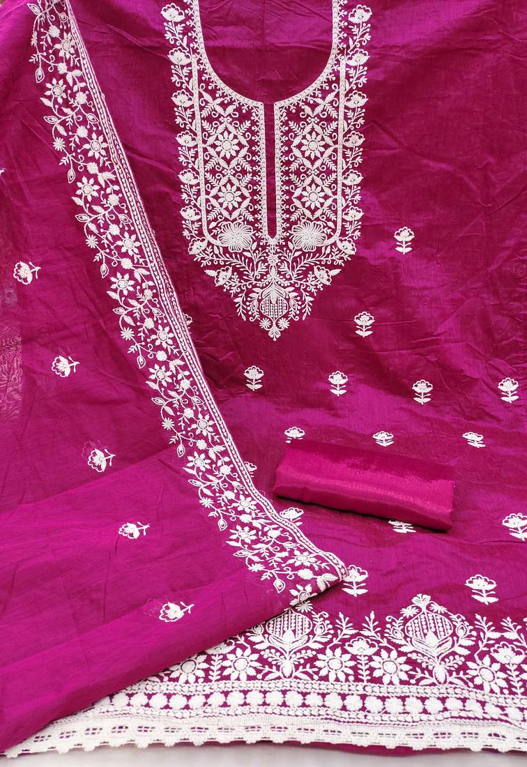 | Product Description | Exclusive Heavy Thread Embroidered And Fancy Border With Designer Embroidered Dupatta Straight Style 1.80 Mtr Unstitched Dress Material Top Of Pink Colour Chanderi Cotton Fabric With 2 Mtr Santoon As Lining Inner Fabric Also Including 3.60 Mtr Unstiched Bottom Material Of Pink Colour Santoon Fabric With 2.10 Mtr Dupatta Of Pink Colour Chanderi Cotton Fabric By Shadow & Saining Brand |