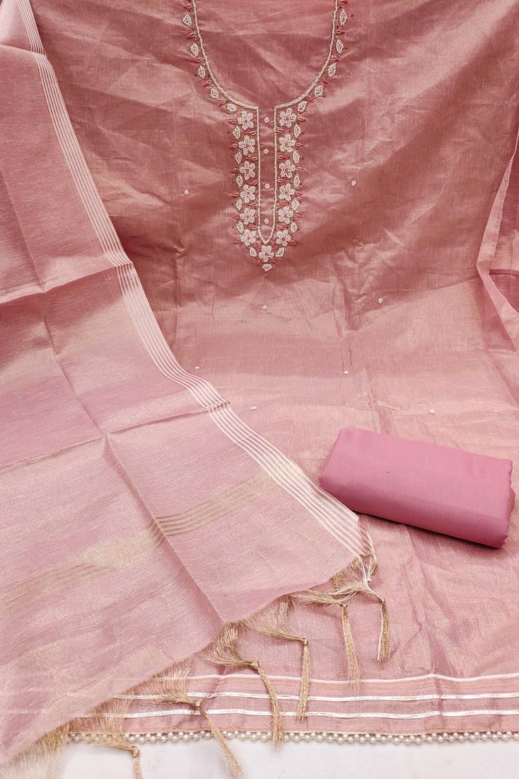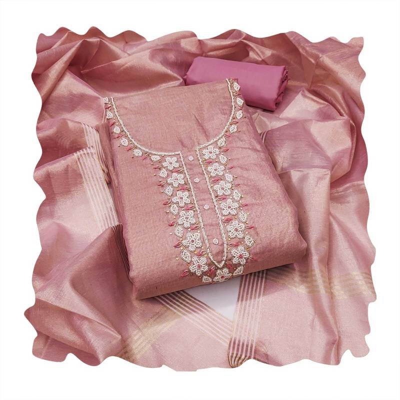 | Product Description | Curated Heavy Handwork And Fancy Border With Designer Dupatta Straight Style 2.00 Mtr Unstitched Dress Material Top Of Pink Colour Simmer Cotton Fabric With 2 Mtr Dull Santoon As Lining Inner Fabric Also Including 3.80 Mtr Unstiched Bottom Material Of Pink Colour Dull Santoon Fabric With 2.10 Mtr Dupatta Of Pink Colour Banarasi Simmer Cotton Fabric By Shadow & Saining Brand |