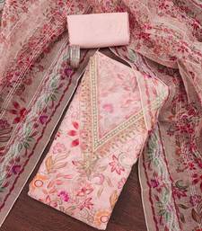 Pink sequins organza semi stitched churidar dress-materials