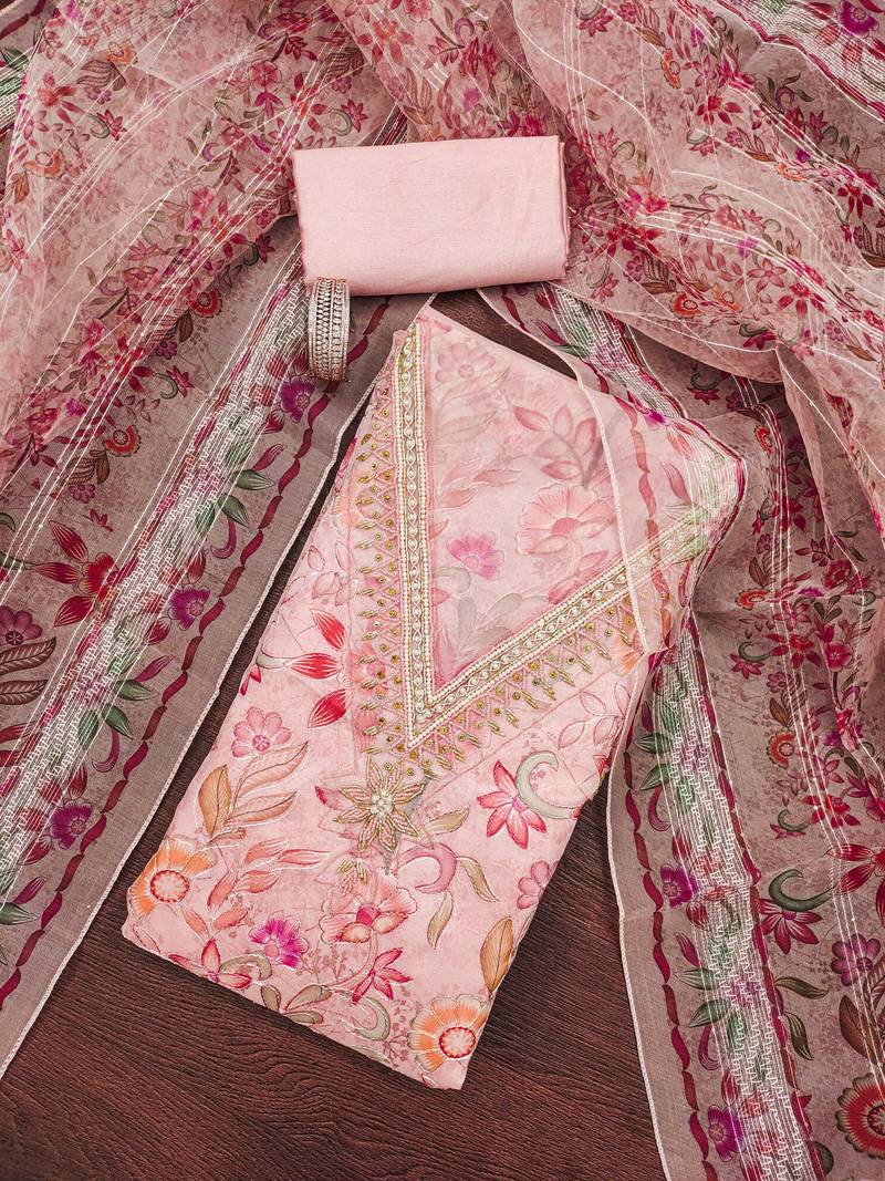 | Product Description | Stylish Thread Work With Designer Position Print And Hand Work With Fancy Sequence And Digital Print Dupatta Work Straight Style 2.00 Mtr Unstitched Dress Material Top Of Pink Colour Heavy Organza Fabric With 2 Mtr Heavy Santoon As Lining Inner Fabric Also Including 4.00 Mtr Unstiched Bottom Material Of Pink Colour Heavy Santoon Fabric With 2.25 Mtr Dupatta Of Pink Colour Heavy Organza Fabric By Shadow & Saining Brand |