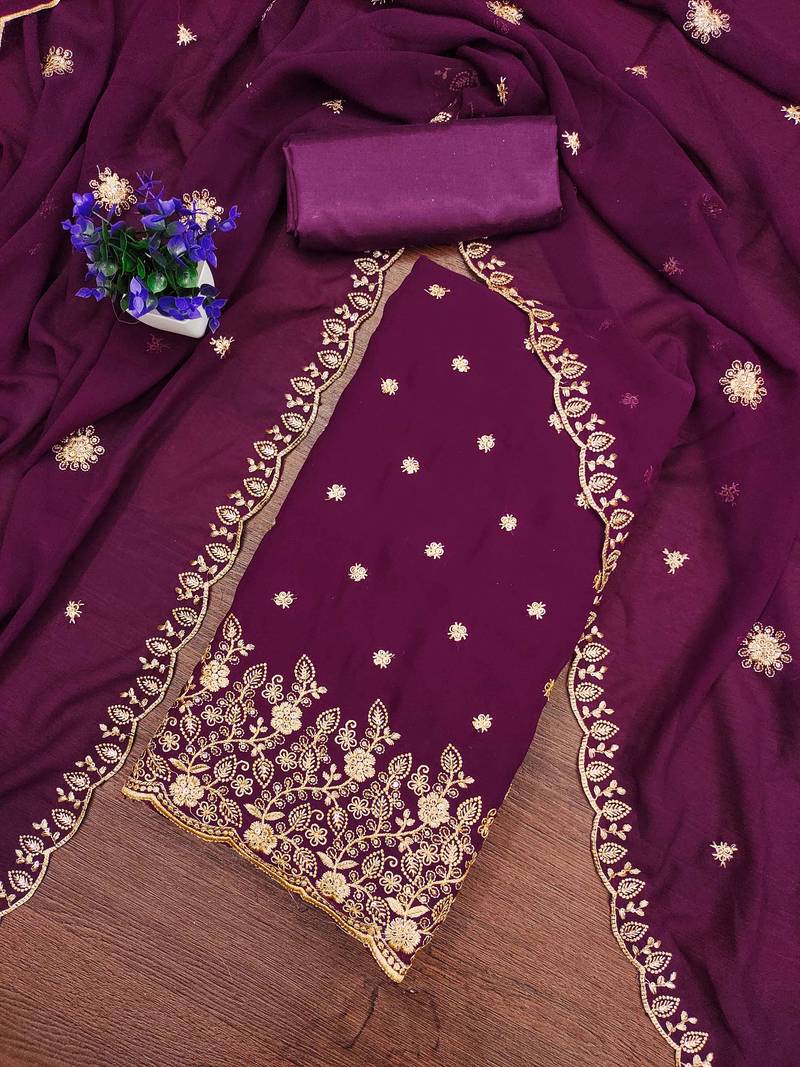 | Product Name | Purple Embroidered Georgette Semi Stitched Churidar Dress Materials | |