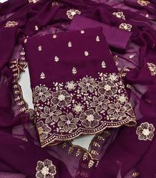 Purple embroidered georgette semi stitched churidar dress-materials