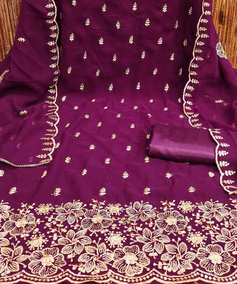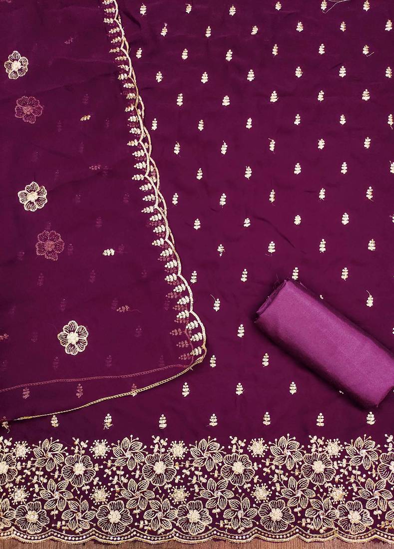 | Product Name | Purple Embroidered Georgette Semi Stitched Churidar Dress Materials | |