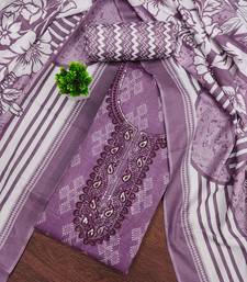 Purple printed cotton semi stitched churidar dress-materials