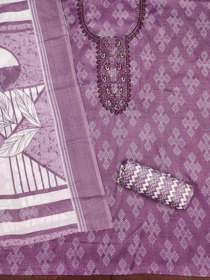 | Product Name | Purple Printed Cotton Semi Stitched Churidar Dress Materials | |