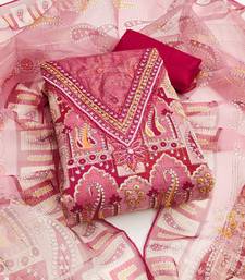 Red color sequence heavy organza straight churidar dress material semi stitched