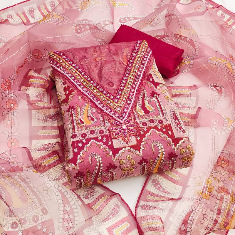 | Product Description | Stylish Sequence Work With Designer Position Print And Hand Work With Fancy Sequence And Digital Print Dupatta Work Straight Style 2.00 Mtr Unstitched Dress Material Top Of Red Colour Heavy Organza Fabric With 2 Mtr Heavy Santoon As Lining Inner Fabric Also Including 4.00 Mtr Unstiched Bottom Material Of Red Colour Heavy Santoon Fabric With 2.25 Mtr Dupatta Of Red Colour Heavy Organza Fabric By Shadow & Saining Brand |