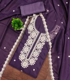Royal-blue embroidered georgette semi stitched churidar dress-materials
