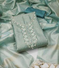Sea-green hand embroidery cotton semi stitched churidar dress-materials