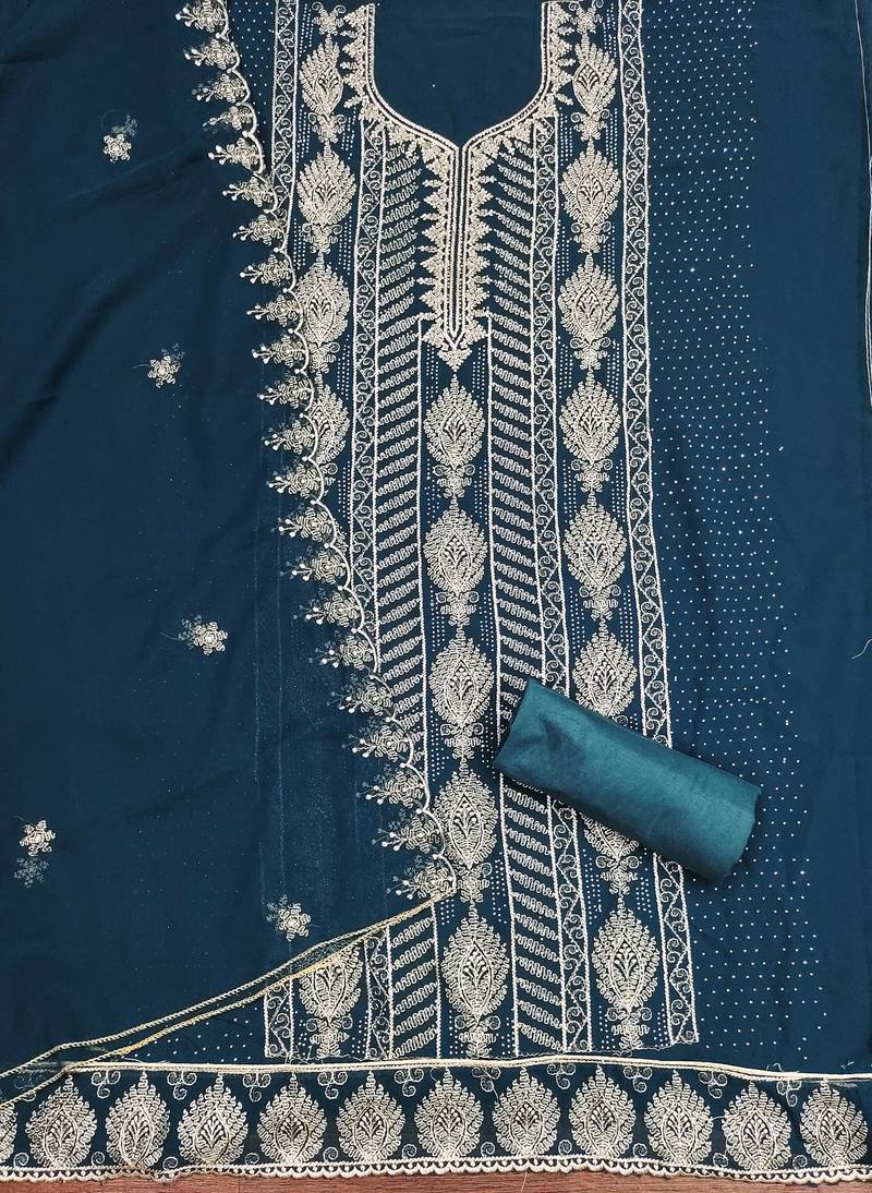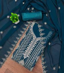 Teal-blue embroidered georgette semi stitched churidar dress-materials