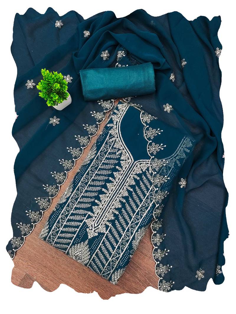 | Product Name | Teal Blue Embroidered Georgette Semi Stitched Churidar Dress Materials | |