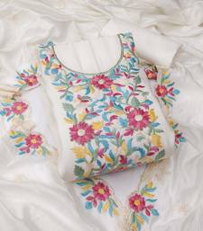 White color thread work roman silk straight churidar dress material semi stitched
