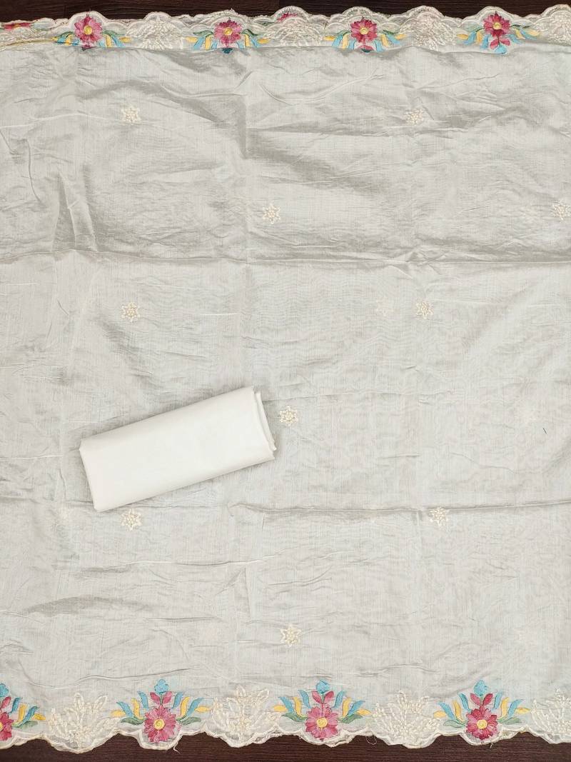 | Product Name | White Color Thread Work Roman Silk Straight Churidar Dress Material | |