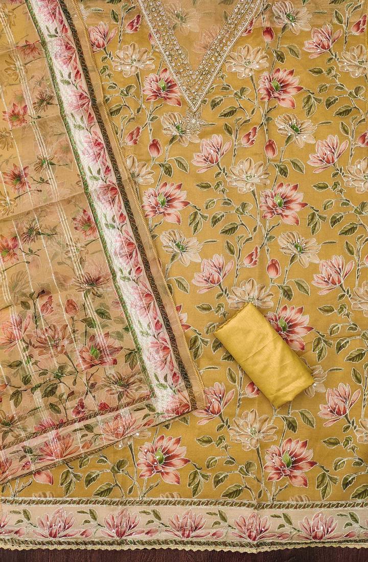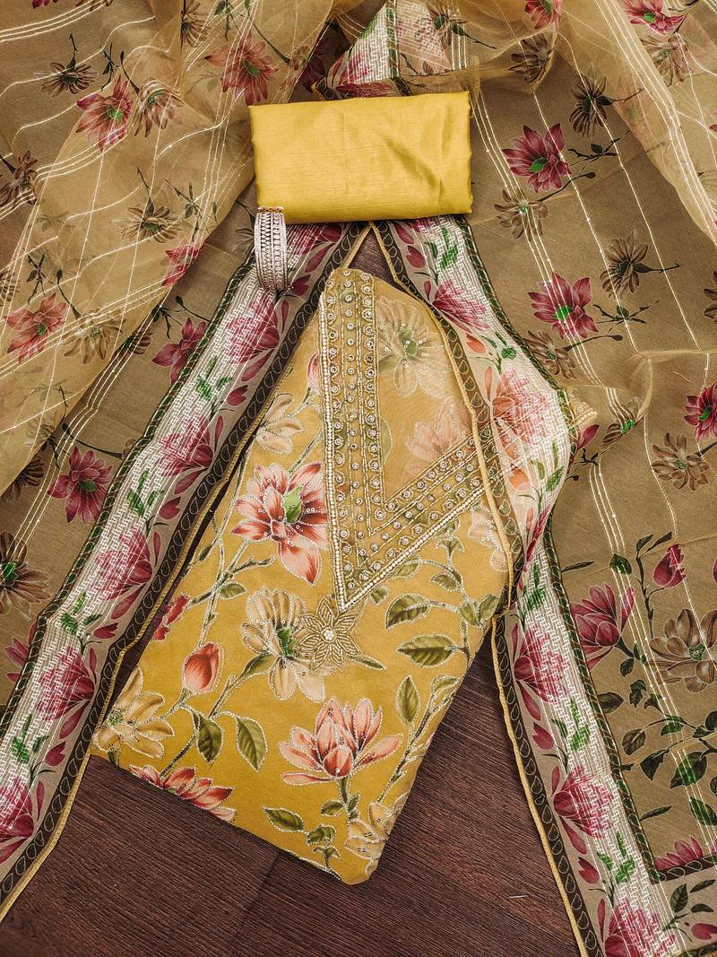 | Product Name | Yellow Sequins Organza Semi Stitched Churidar Dress Materials | |
