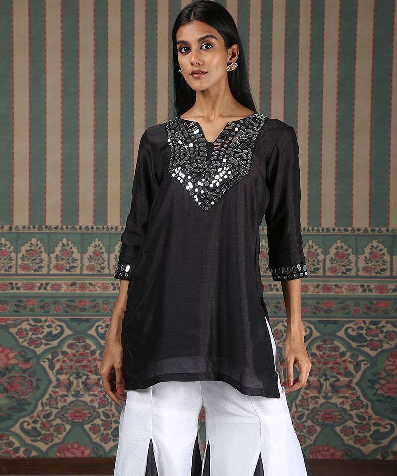 | Product Name | Black Embroidered Silk Blend Kurta Set | |