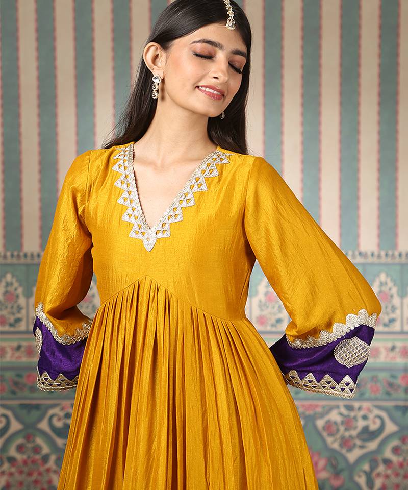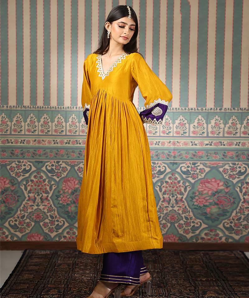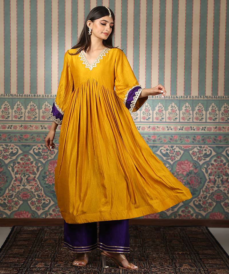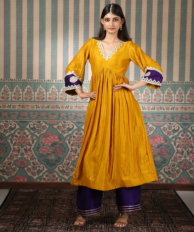 | Product Name | Mustard Embroidered Silk Blend Kurta Set | |