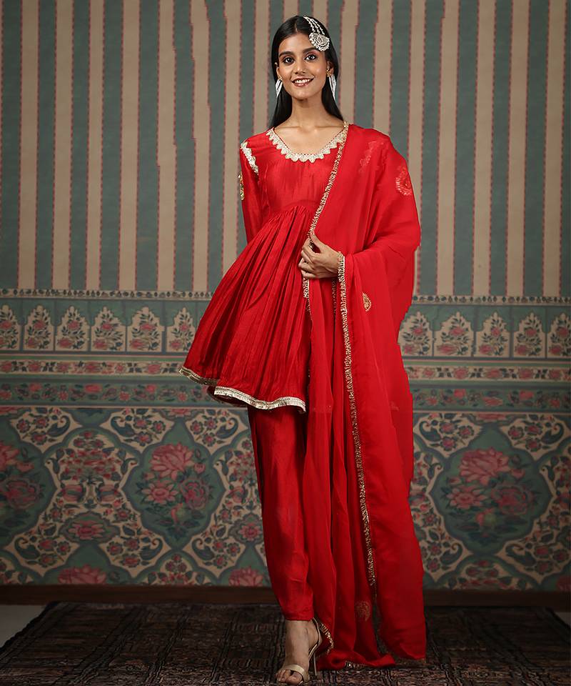 | Product Name | Red Embroidered Silk Blend Kurta Set | |