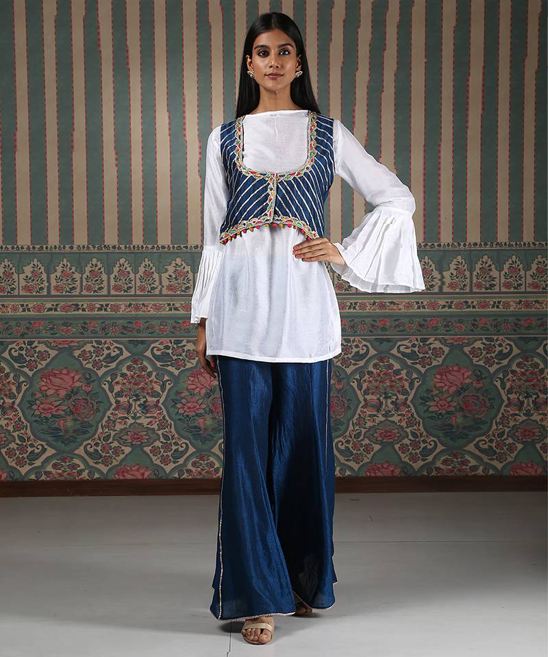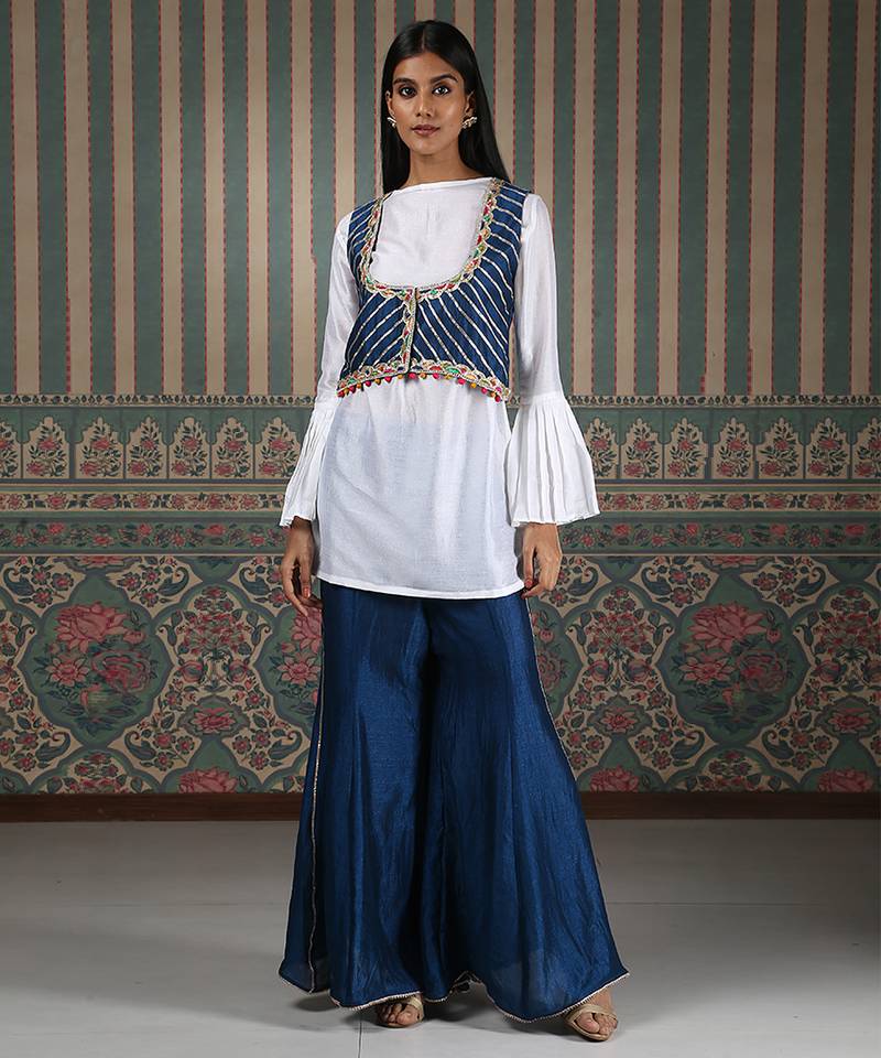 Product Name White Plain Silk Blend Gharara Set