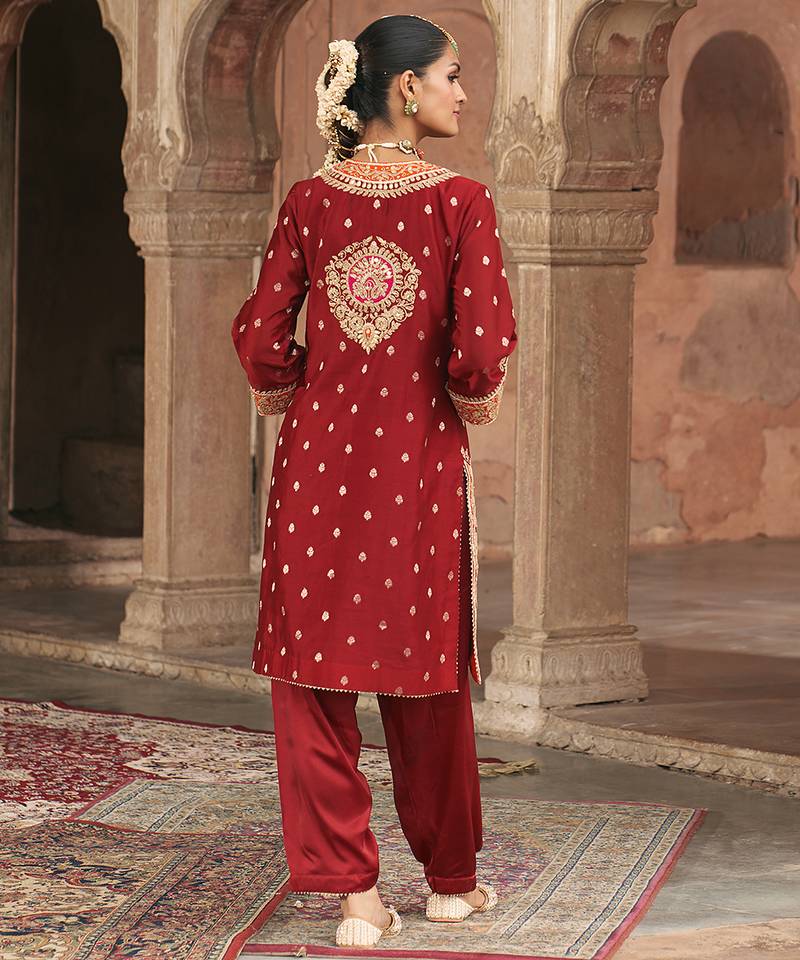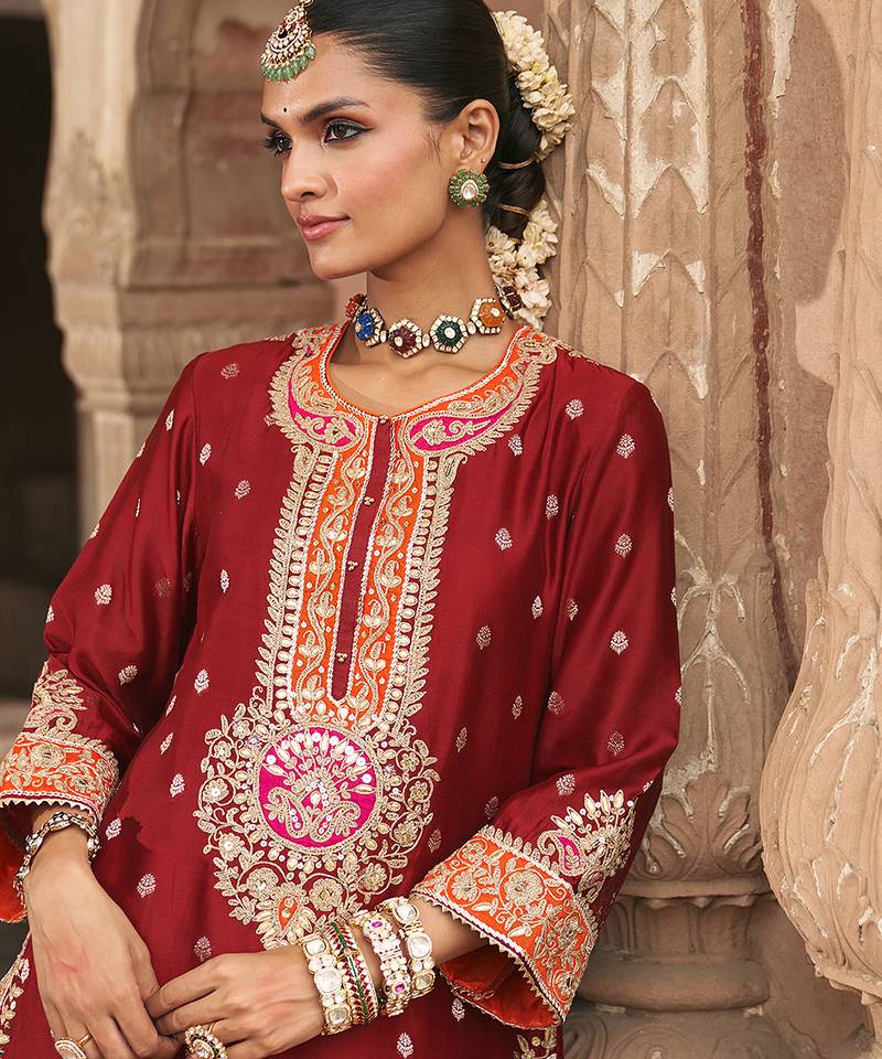 Product Name | Red Embroidered Chanderi Silk Kurta Set | |