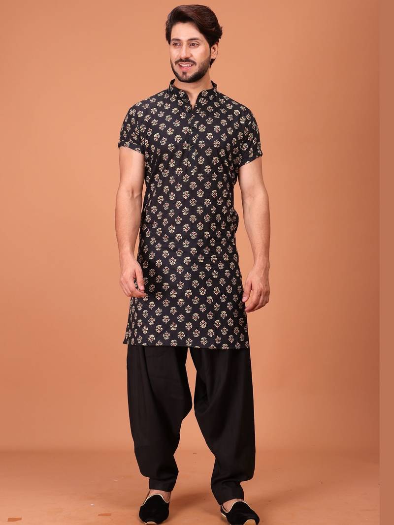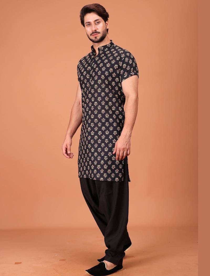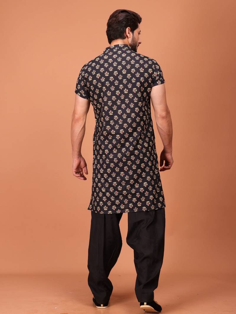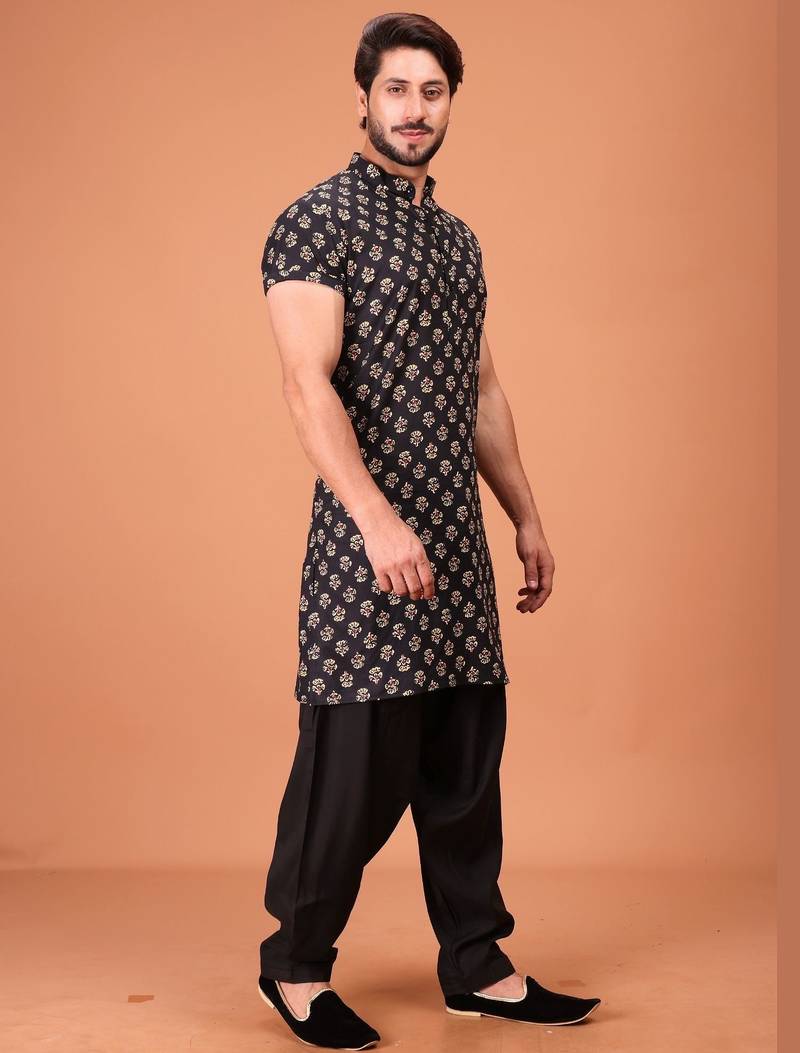 | Product Name | Black Cotton Printed Short Sleeve Only Kurta For Mens | |