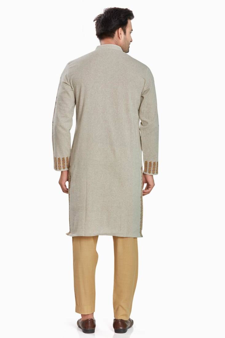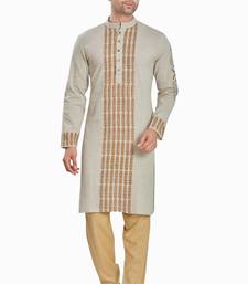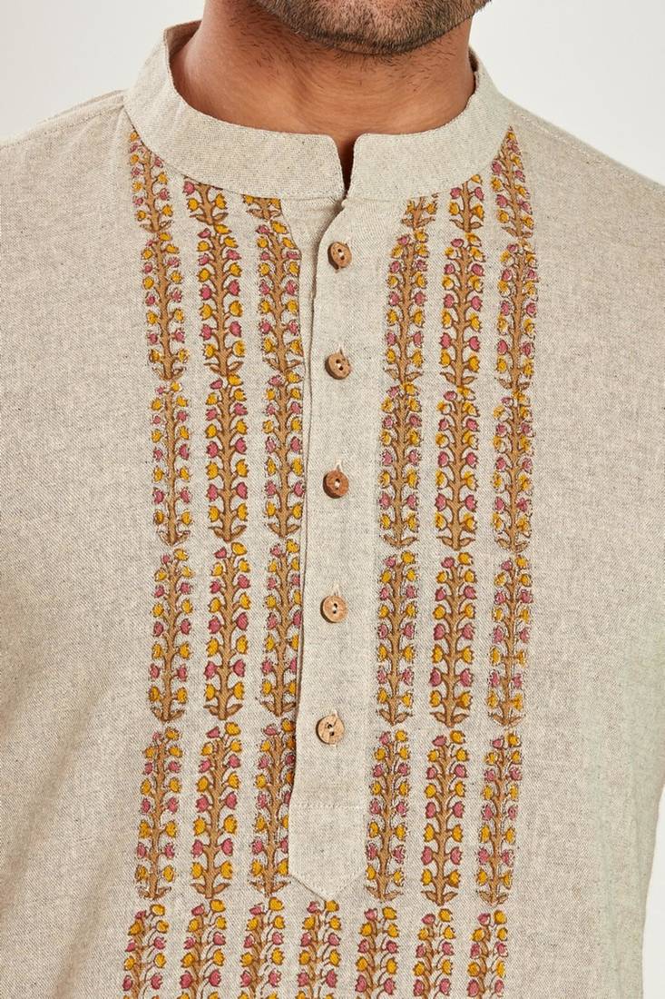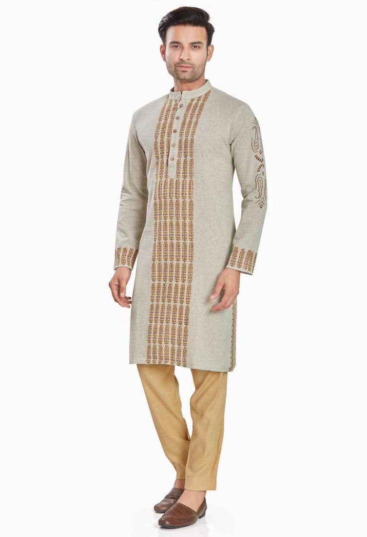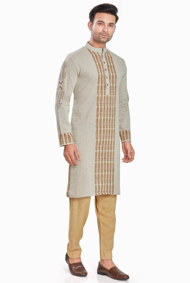 Khakhi hand block printed kurta with embroidery viscos kurta payjama etnic wear :: festive wear