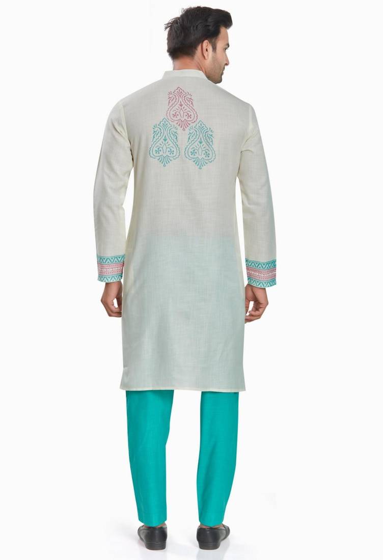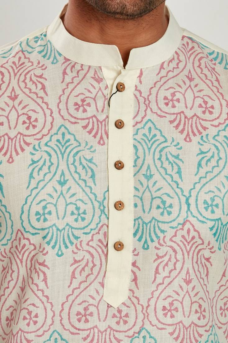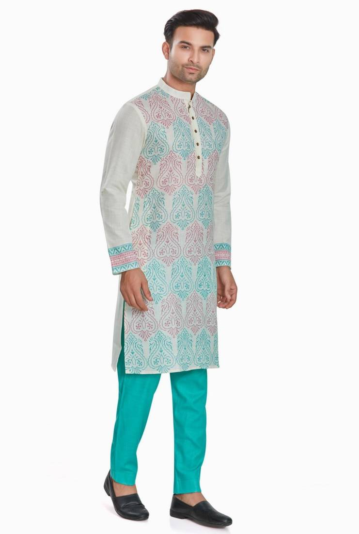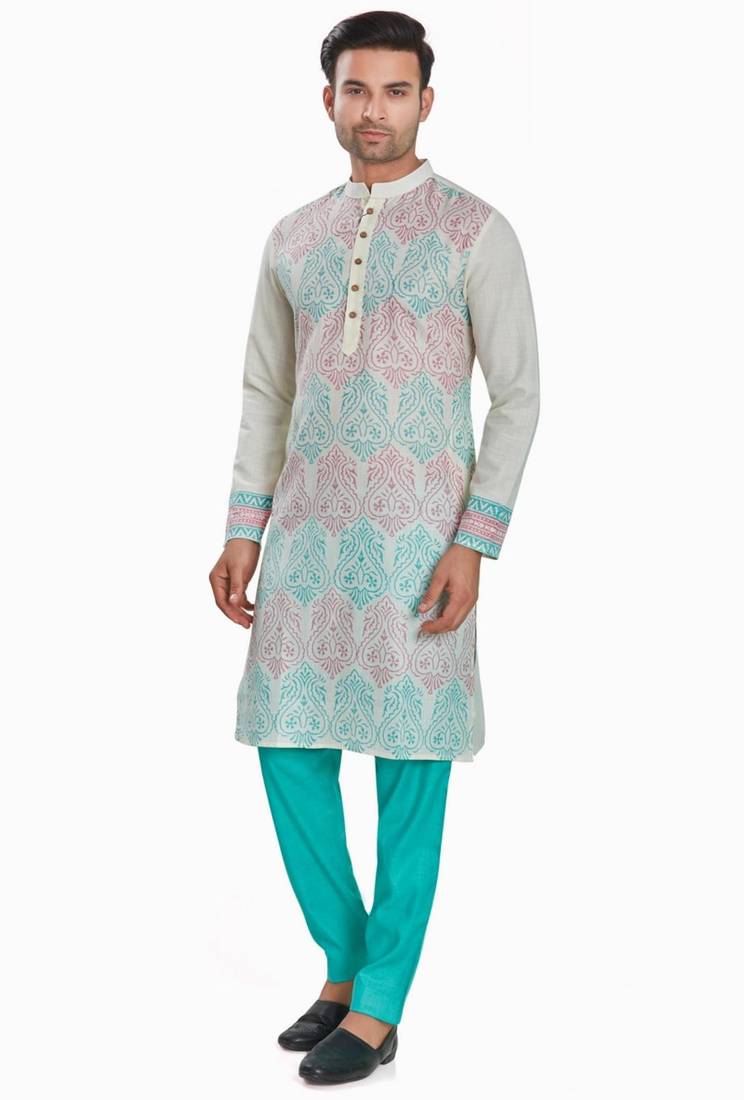 Off white hand block kurta viscos kurta payjama etnic wear :: festive wear