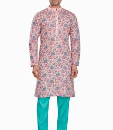 Pink hand block printed kurta viscos kurta payjama etnic wear :: festive wear