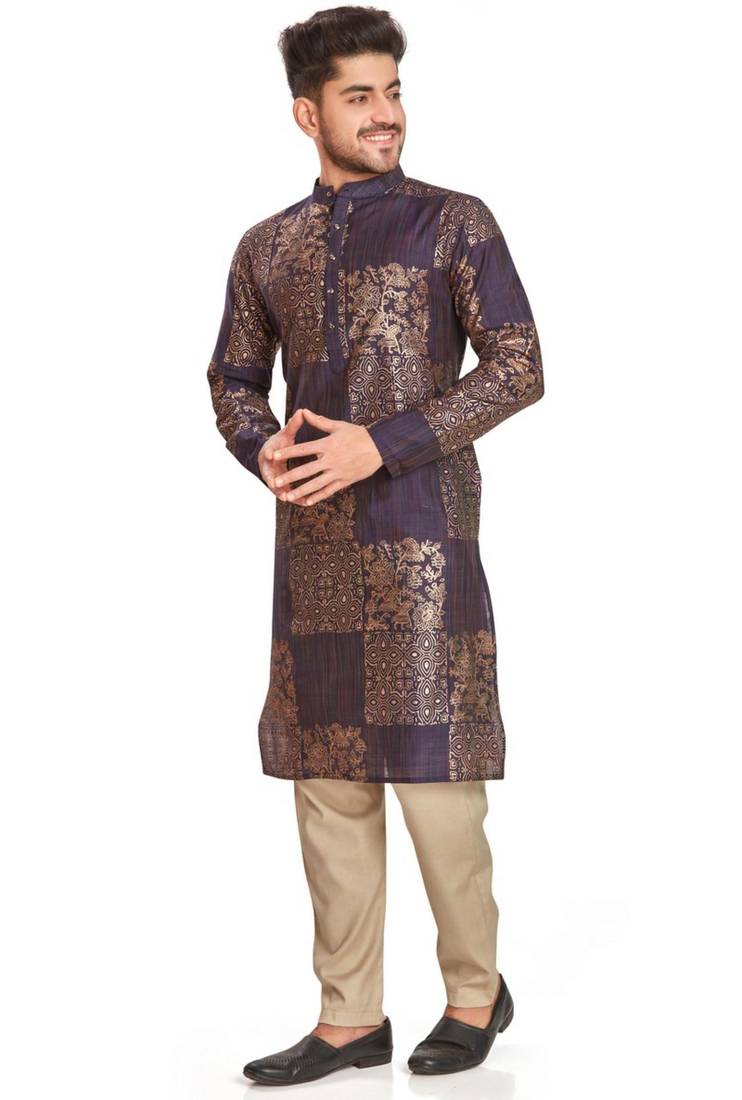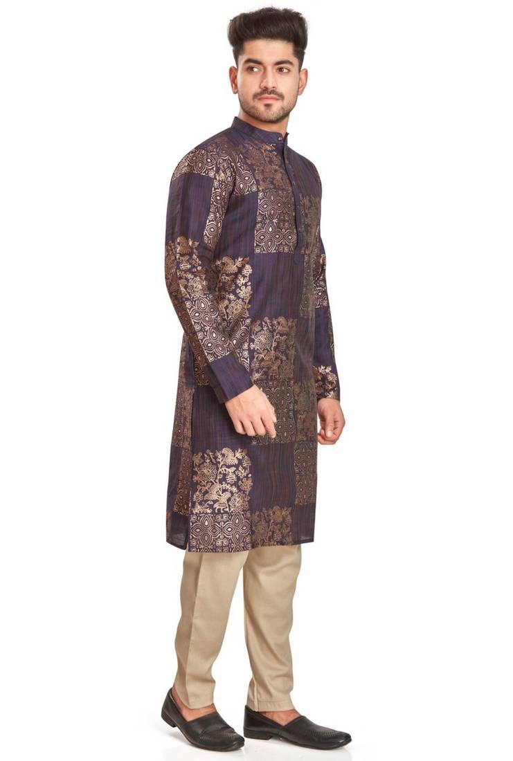 Purple hand block kurtra viscos traditional kurta payjama etnic wear :: festive wear