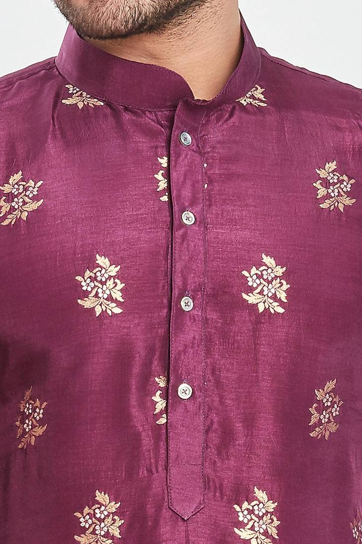 Purple hand block printed kurta with embroidery banarsi silk kurta payjama etnic wear :: festive wear