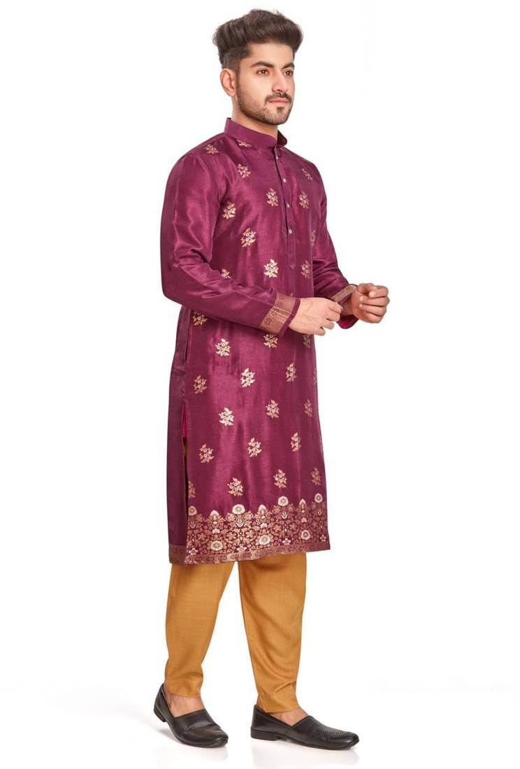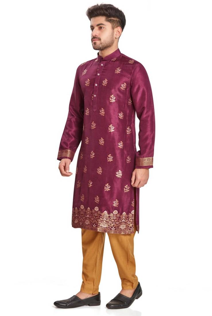 Product Name | Purple Hand Block Printed Kurta With Embroidery Banarsi Silk Kurta Payjama Etnic Wear / Festive Wear | |