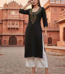 Black embroidered rayon kurta set stitched