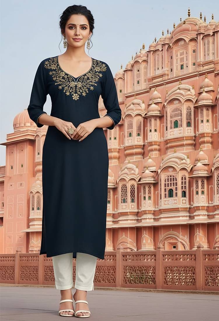 | Product Name | Blue Embroidered Rayon Kurta Set | |