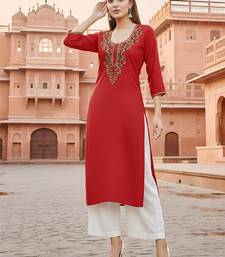 Red embroidered rayon kurta set stitched